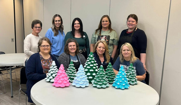 Host a lighted Ceramic Vintage Christmas Tree party with friends, family or co workers. Party pack will come with everything needed to complete your tree.Best of all NO kiln firing required!