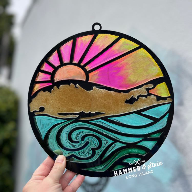 Join us on Thursday, March 12th @ 6:00pm for our Faux Stained Glass Workshop. This fun and exclusive workshop teaches you the beauty of creating your very own faux stained glass piece using wood, resin art AND crushed glass! All Faux Stained Glass projects are about 10" in either width or height (or both). Each design will vary, but in the same range.
