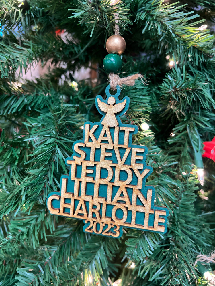 Ornaments are approx. 5 inches tall (2-3 names will be shorter in length as shown). Laser cut from 1/4 premium birch wood and painted for you!